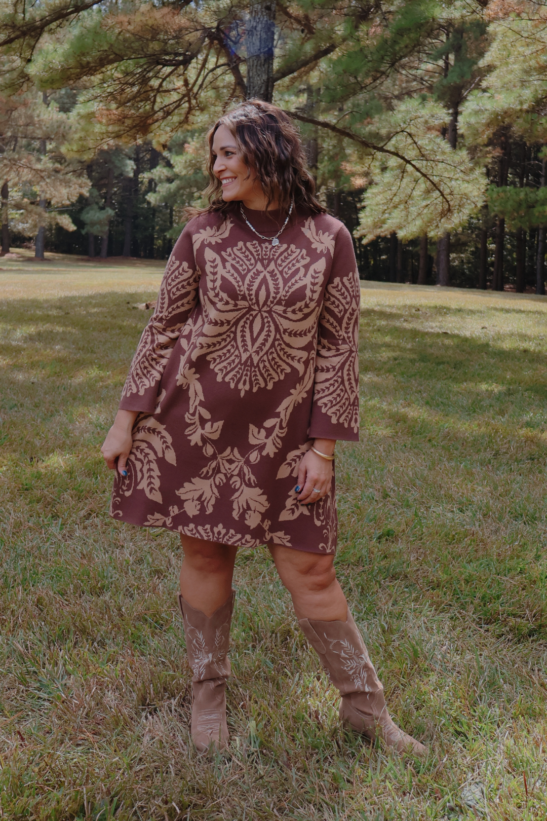 Cozy meets chic with the Arden Two-Tone Abstract Sweater Dress. Designed with a sophisticated mock neck and a flattering A-line silhouette, this dress blends comfort with statement style. The intricate two-tone abstract print elevates the classic sweater dress, making it perfect for both casual outings and elevated gatherings. Crafted from a soft knit blend, it drapes beautifully while keeping you warm and stylish all season long.