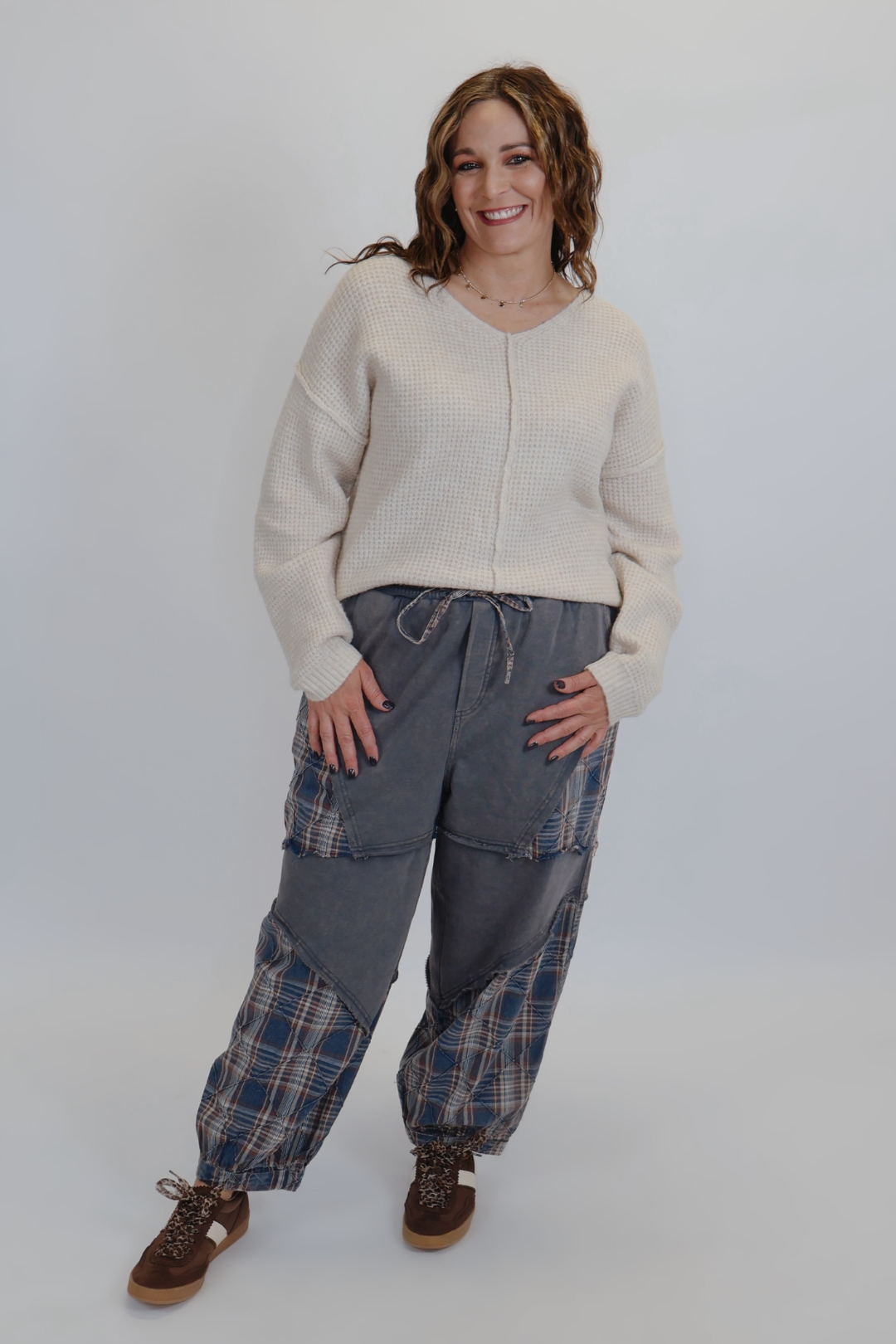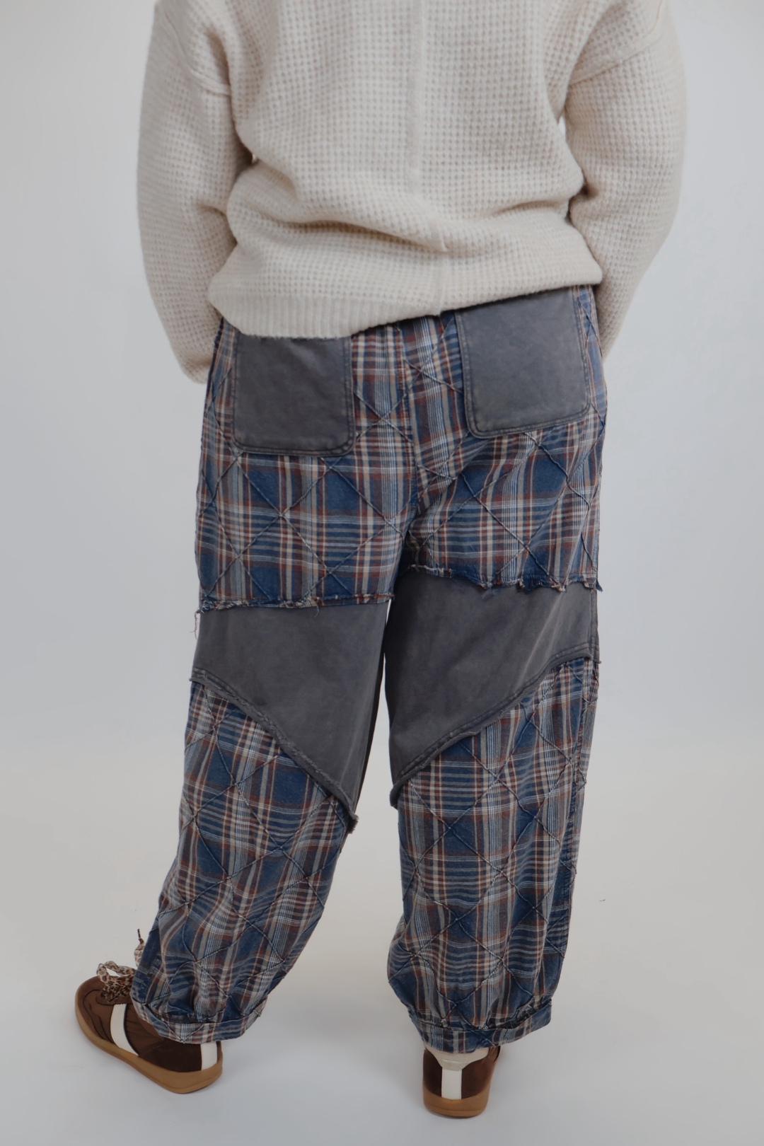 Effortlessly stylish and ultra-comfortable, these washed plaid mixed terry quilting detail pants are perfect for laid-back days with a touch of unique flair. Featuring a soft mineral wash finish, these pants offer a relaxed fit that’s both cozy and flattering. The plaid quilted panels add a vintage-inspired edge, making them a standout piece in any casual wardrobe.