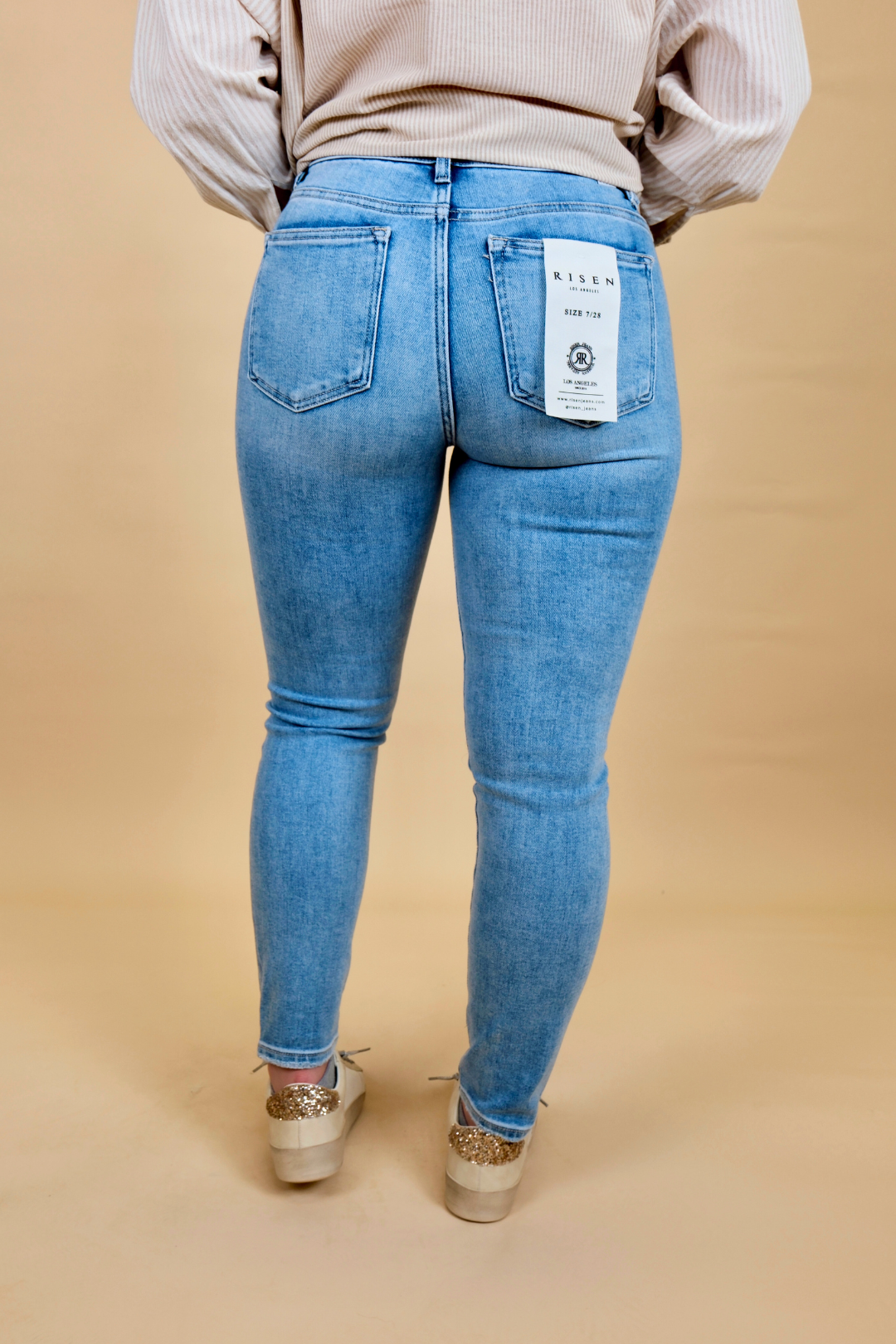 Rock your look in these Jess High Rise Skinny Jeans! With a flattering high rise fit and basic skinny style, these light jeans are perfect for any occasion. Made from a comfortable blend of 90.5% cotton, 7.5% polyester, and 2% spandex, you'll never want to take them off. Time to elevate your denim game!