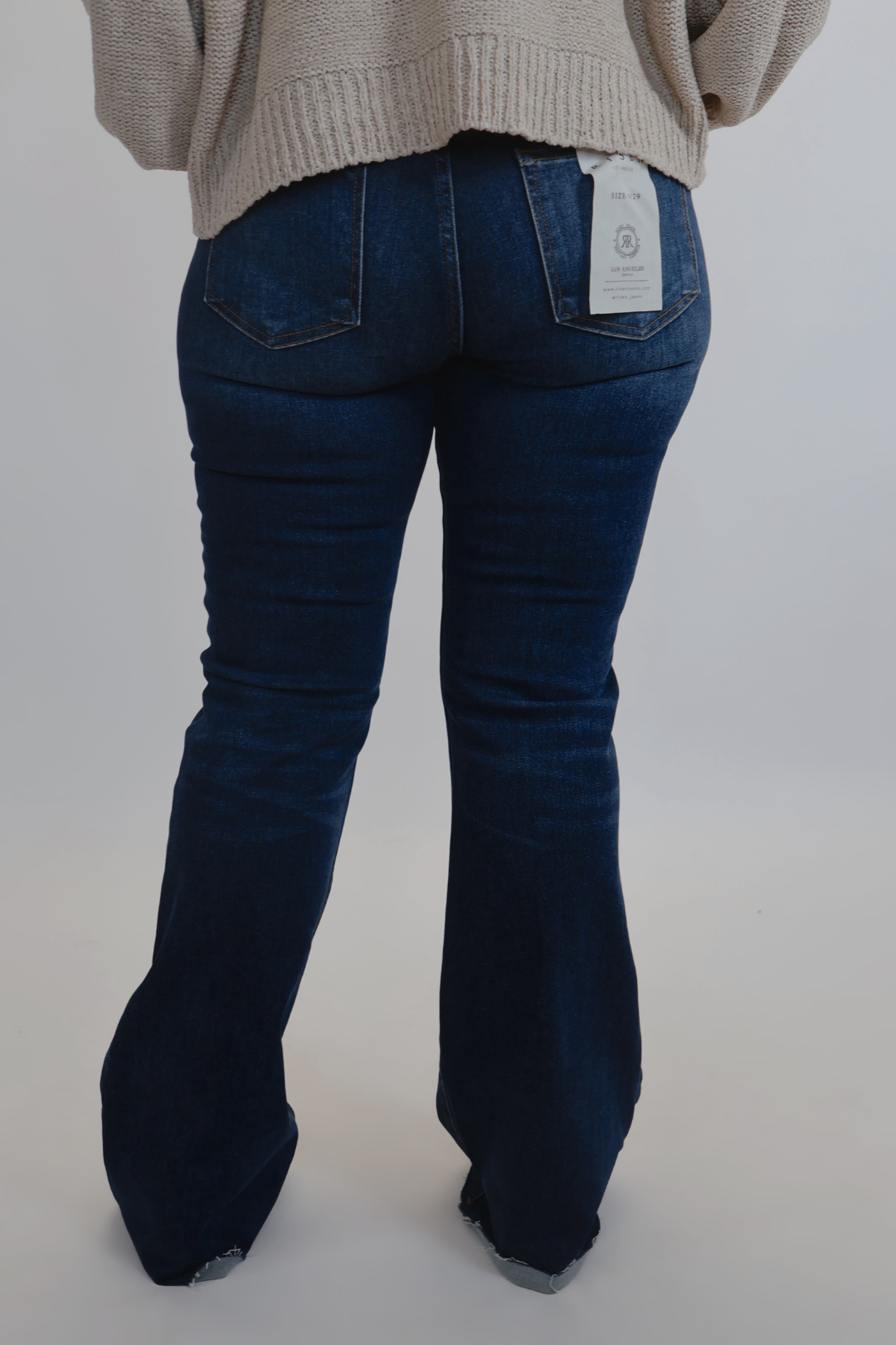 Step up your denim game with our Kelly Mid Rise Flare Jeans. With a 9 1/2" rise and 34" inseam, these jeans are perfect for all body types. The small distressed details add a touch of edge to these long jeans. Made with a blend of cotton, polyester, and spandex, they offer both comfort and style. Get ready to turn heads in these flared beauties!