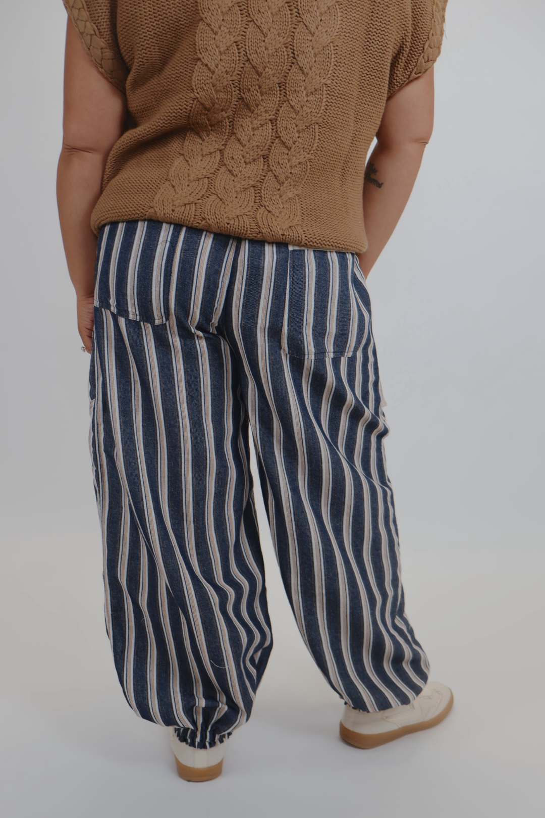 Whether you pair them with a simple tee, a cozy pullover, or a crisp button-down, these soft-washed striped pants bring a laid-back, coastal-meets-boho vibe to any outfit. Ideal for errands, travel days, casual office looks, and every moment in between.