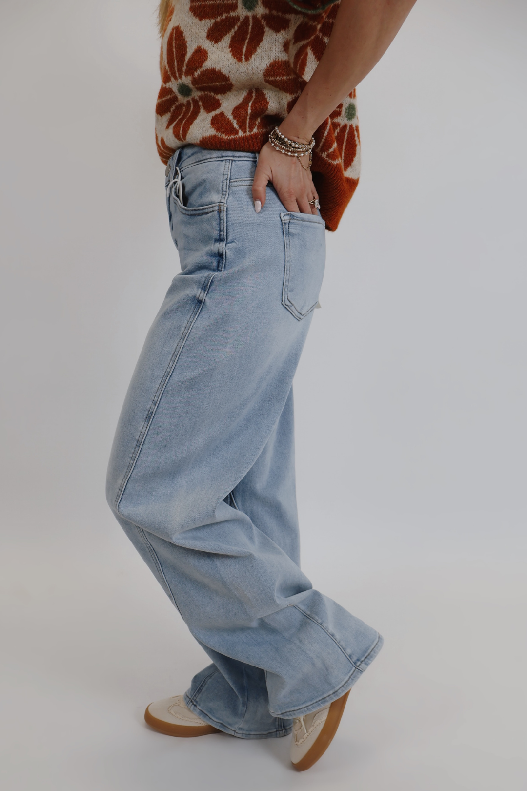 Step into effortless style with our Mid Rise Barrel Jeans in a fresh light wash. Designed with a flattering mid-rise waist and a modern barrel leg silhouette, these jeans offer a relaxed yet structured fit that’s both comfortable and fashion-forward. The unique curved seam detail adds a contemporary touch, while the soft, premium denim provides all-day wearability.