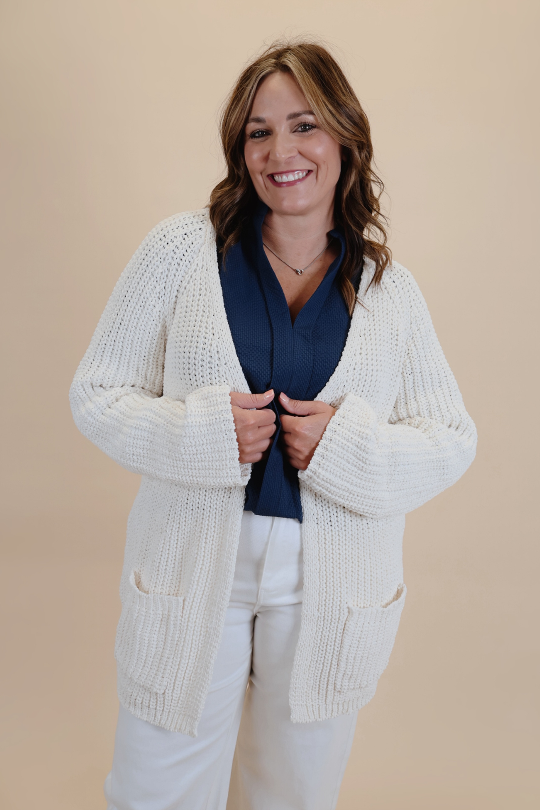 Wrap yourself in laid-back charm with the Willow Open-Knit Cardigan. This cozy, soft ivory sweater features a breathable chunky-knit texture and a relaxed, slightly slouchy fit that’s perfect for layering over anything from camis to dresses. Whether you’re chilling at home or making a quick coffee stop, this cardigan brings a playful, handmade warmth to your everyday style.